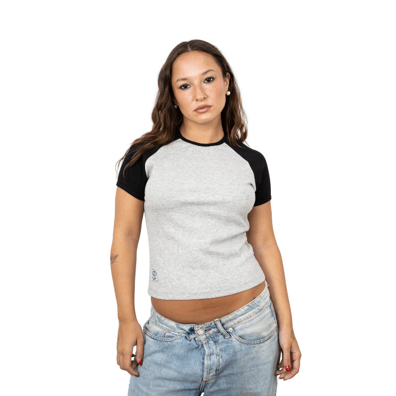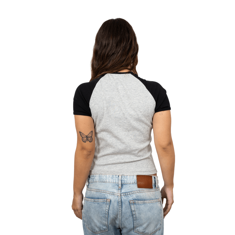 REMERA RUSTY R2K RAGLAN SKIMMER DAMA GRI